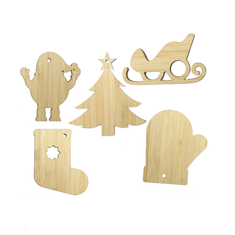 Großhandel DIY handgemachte Bambus Anhänger Weihnachts baum Ornament mit laser geschnittenen Holz Basis Glas Ornamente von Hand verziert